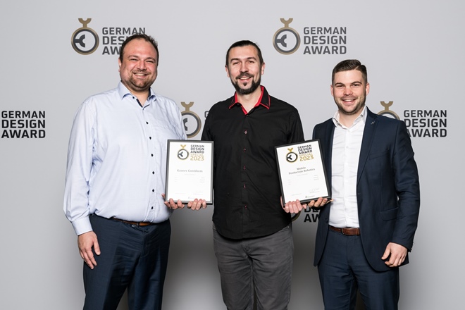 Krones has scored again in terms of design excellence – presenting not just one but two innovations as both the Contiform stretch blow-moulding machine and the Mobile Production Robotics system win the German Design Award in the category of Excellent Product Design Industry.