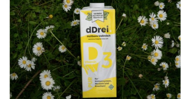 A new “dDrei milk” provides vitamin D in a natural way. The manufacturer is dDrei Milchkristalle GmbH in Germany. By irradiating the cows in the barn, the milk is up to 20 times richer in vitamin D compared to the conventional product. During the day, the lighting mimics the natural full spectrum of sunlight. Through this and a special feeding, the cows accumulate vitamin D. The process has been patented.