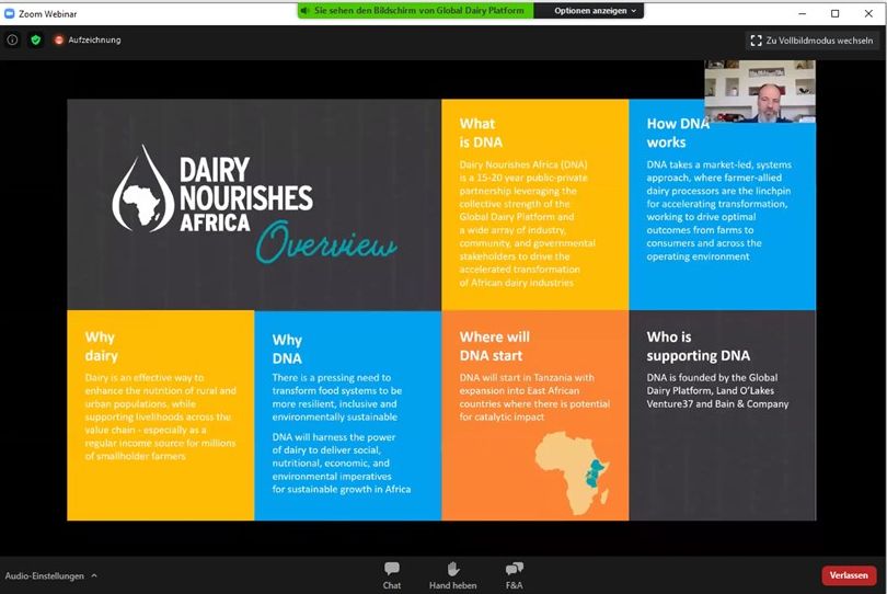 James Waldvogel, DfA and former US Secretary of Agriculture, spoke about DNA – Dairy Nourishes Africa, a program founded and developed by GDP with others. DNA is basically a long-lasting (15- 20 year) private public partnership concept. Target is to achieve transformation by building a truly sustainable local economy based on the starting point dairy. Focused on East Africa, the initiative will start in Tanzania. The budget for the next 15 years totals $15m.