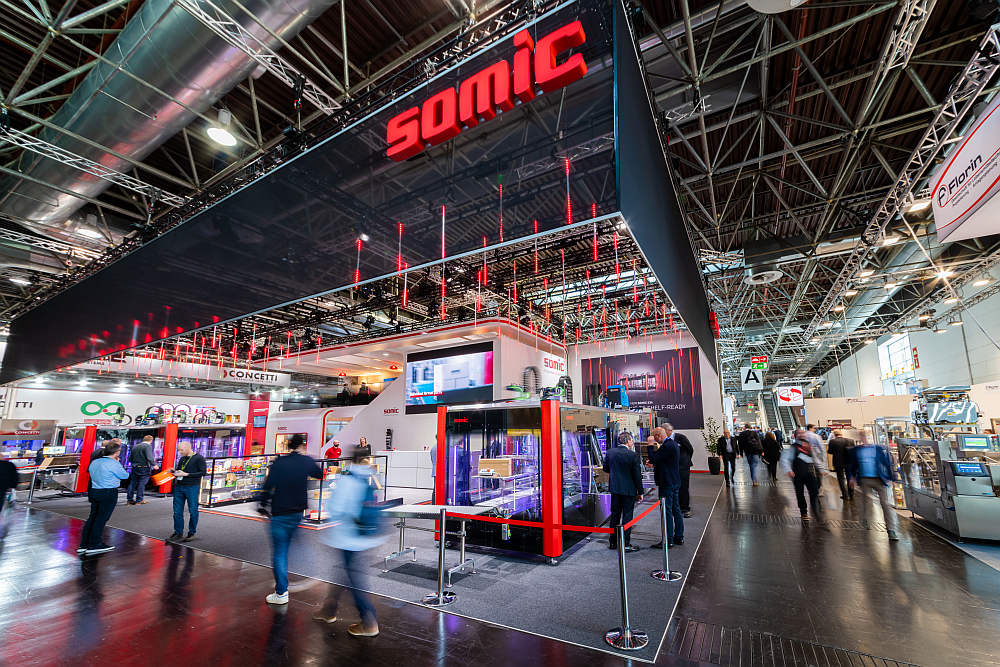 Two innovations, the SOMIC 434 generation of packaging machines and the CORAS collecting and grouping system, were very well received at the SOMIC booth at interpack. The end of line packaging specialists showed solutions for even greater flexibility in end of line packaging to users in the food, non-food, cosmetics and pet food industries.