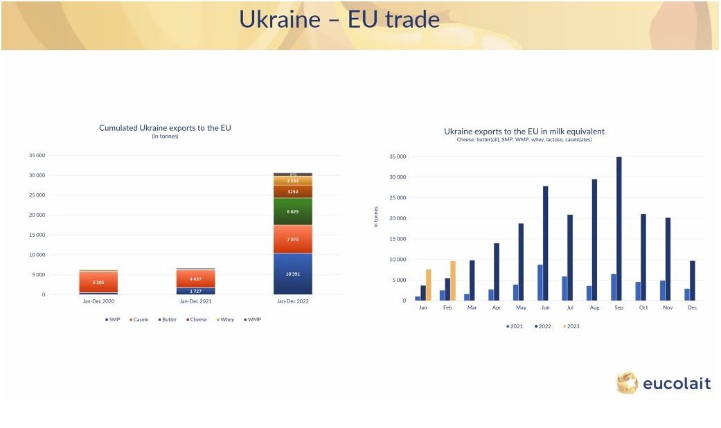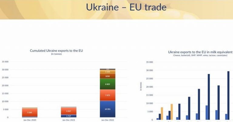 Alexander Anton, Secretary General of EDA (European Dairy Asscociation), pointed out that in a joint effort, together with Ukrainian association SMPU, milk and dairy were taken off the ‘trade restriction list’ of the five neighbouring countries to Ukraine as of today. „As long as dairy trade is based on reciprocity, we fully support the EU approach of 0 tarifs and 0 quota. As it stands, the Ukrainian lactosphere is fully integrated into the EU dairy sector.“, Anton said. Nevertheless, this ‘integration’ is limited by an approach that needs to be renewed every year and the logistic problems we face today (grain lorry jams at borders, drivers on strike). That’s why the EDA have commissioned a study on the 2030 dairy landscape in the EU and in Ukrainbe under the two assumptions: end of the war and long term integration of Ukraine dairy into the EU.